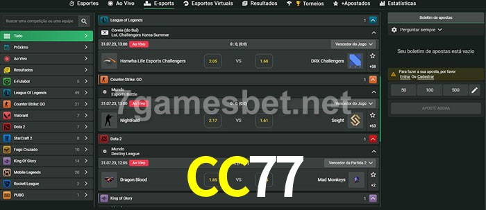 A aposta CC77 oferece aos jogadores a experiência mais conveniente de apostas em eSports!